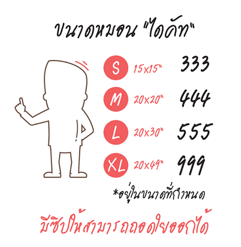 หมอนไดคัทมีทั้งหมด 4 ขนาด