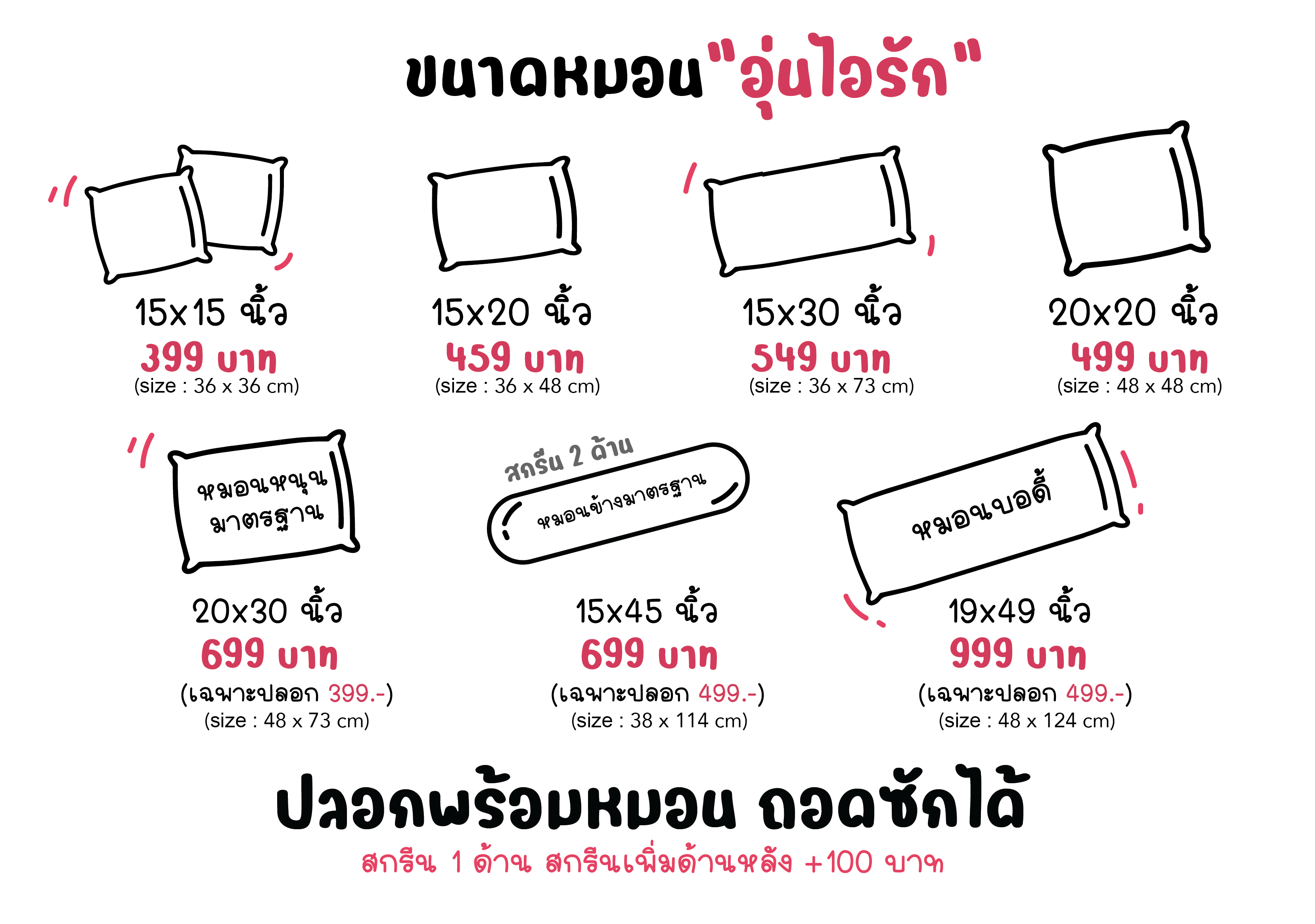 หมอนสกรีนมีทั้งหมด 7 ขนาดค่ะ
